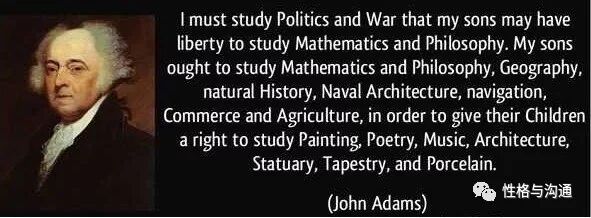 这里,借用美国开国元勋约翰 亚当斯的一段话:我必须研究政治与战争,那么我的儿子们也许才会拥有研究数学和哲学,地理学,自然史,军舰建造,航海术,商业和农业的自由,以便给他们的孩子们研究绘画,诗歌,音乐,建筑,雕塑,织艺和陶瓷的权利。