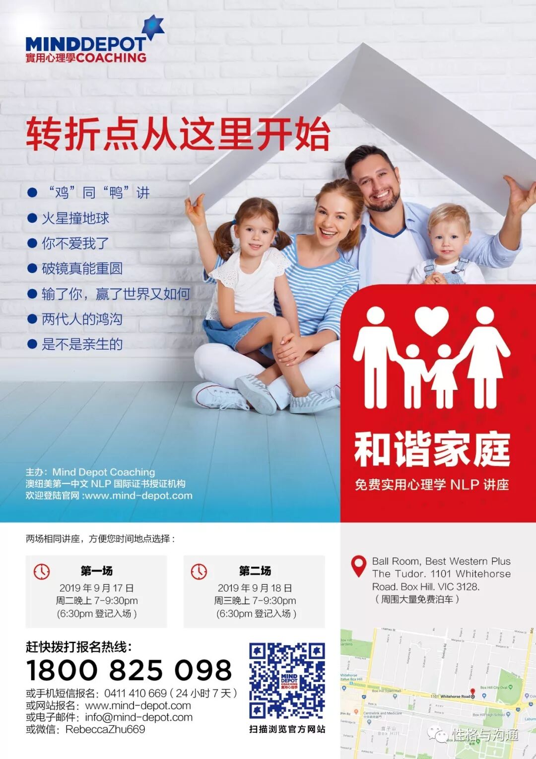 Mind Depot Coaching 实用心理学是澳纽美第一家中文NLP国际证书授证机构。提供NLP(Neuro-Linguistic Programming 身心语言程序学) 、TLT (Time Line Therapy? 时间线疗法), 和NLP教练技术等优质课程及研讨会。综合中国固有的传统文化资讯,分别在悉尼、墨尔本、布里斯班、珀斯、奥克兰、以及洛杉矶等地举办不同程度的NLP培训和讲座。结合视觉、听觉和现场培训的经验,帮助广大学员推进事业、家庭、健康的成功。NLP培训课程旨在为学员提供完全突破原有思维模式的知识、技能与技术,通过个人与团体的搭配,进阶式的练习,迈向更成功的人生。